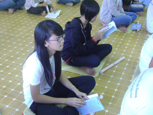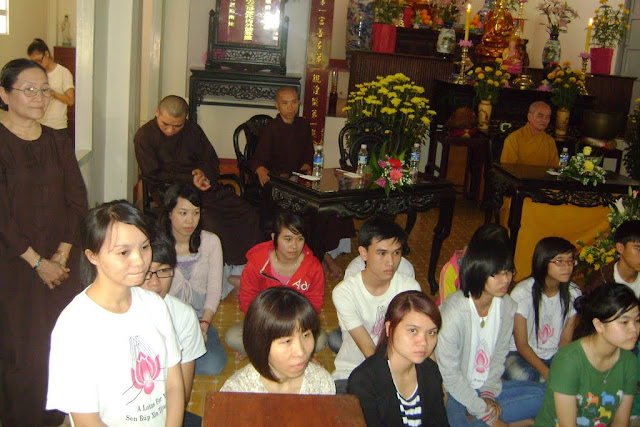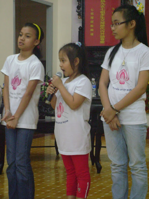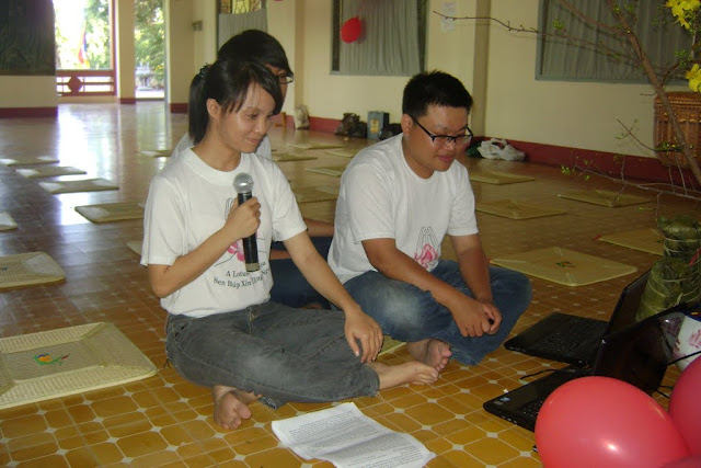 Không khí trở nên sôi động, vui tươi hơn Thầy Đạo Quang “cứu bộ” nhưng gọi bằng từ rất vui là: trả nợ cho gia đình, bằng bài hát rất ý nghĩa “Em là búp sen non”. Thầy Quảng Nhân cũng là một phần tử bị chị Vi “khủng bố’’ nên góp vui bài hát “Quay về nương tựa”. May mắn thay, Thầy Tường Thanh nháy mắt với chị Vi nên được khoan hồng. Hi!