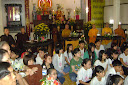 Hòa cùng trong không khí xuân ấy, ngày mùng 5 Tết, tại giảng đường trường TCPH Khánh Hòa, gia đình Tuệ Uyển An lạc hạnh đã tổ chức sinh nhật lần thứ 21 và kỉ niệm “20 năm nhìn lại”. Trước khi gia đình sum vầy bên nhau, chúng con được đảnh lễ HT. Trụ trì Chùa Long Sơn, bậc thạch trụ kiên cố góp phần xây dựng, giữ gìn Phật giáo tỉnh nhà. Đúng 3 giờ, ai cũng nghiêm trang để cung thỉnh chư Tôn đức quang lâm. Bao tâm tư muộn phiền, lo âu dường như tan biến để nhường lại tâm hồn thư thới, niềm tôn kính vô biên hòa quyện cùng làn hương trầm khi Thầy Chỉ Đạo dâng hương, đảnh lễ Tam Bảo. Vui hơn nữa là chúng con được gặp Sư ông, có sự hiện diện của Thầy Đạo Quang, Thầy Nhật Hiếu, Thầy Huệ Hải, Thầy Quảng Nhân, Thầy Tường Thanh và ấm áp hơn khi đông đảo các Tuệ cùng quý phụ huynh đều tụ hội về đây trong ngày gặp mặt đầu năm này.